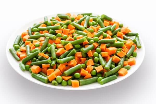 Garden fresh frozen carrots, green peas, and green beans. No additives.